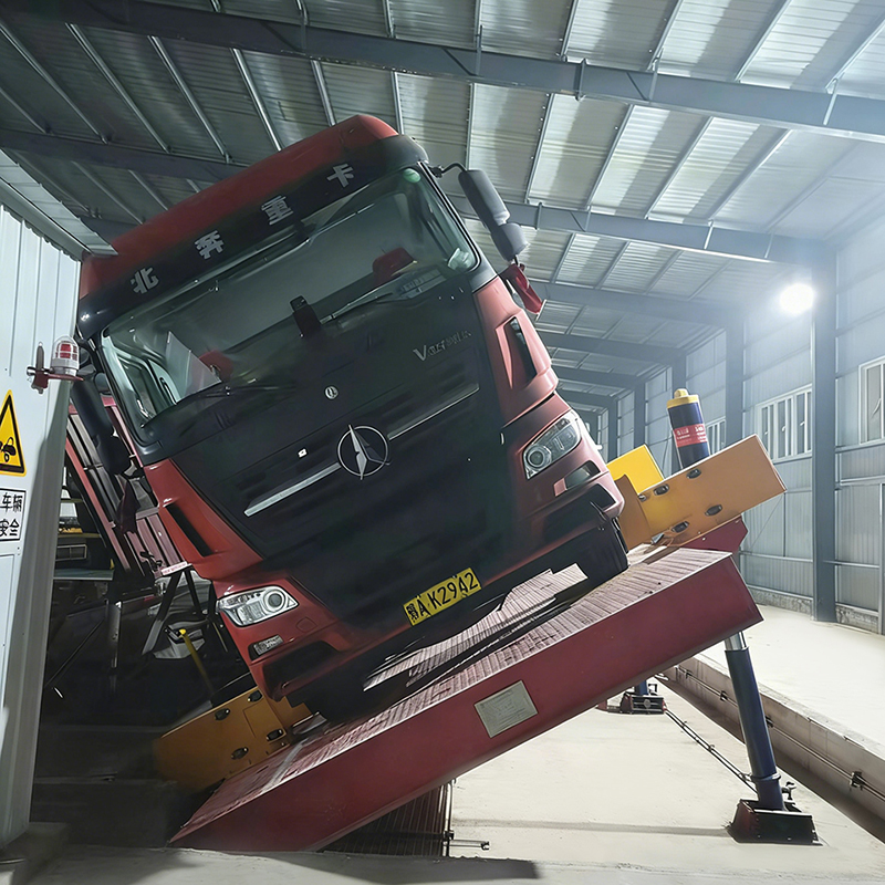 This Side-turn truck dumper is a piece of equipment designed for unloading bulk materials from standard heavy-duty trucks. It is specifically engineered for standard trucks carrying bulk materials such as coal, ore, grain, and cement, and is particularly adept at handling "difficult-to-unload" materials that are viscous or prone to caking (such as wet sticky coal and iron ore fines).